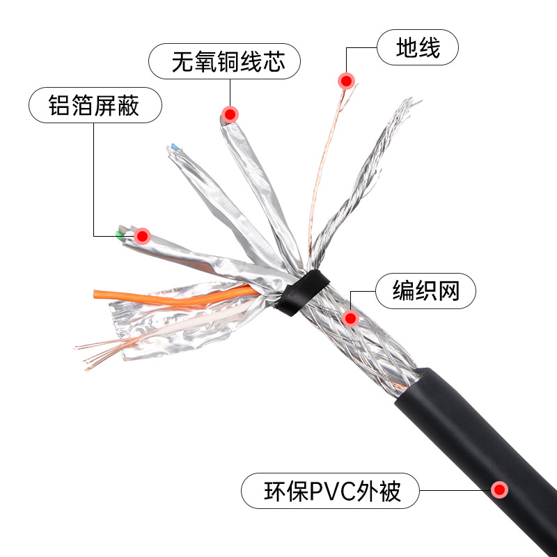 網線廠家生產(chǎn)八類SFTP純(chún)銅雙屏蔽網線產品優勢:
